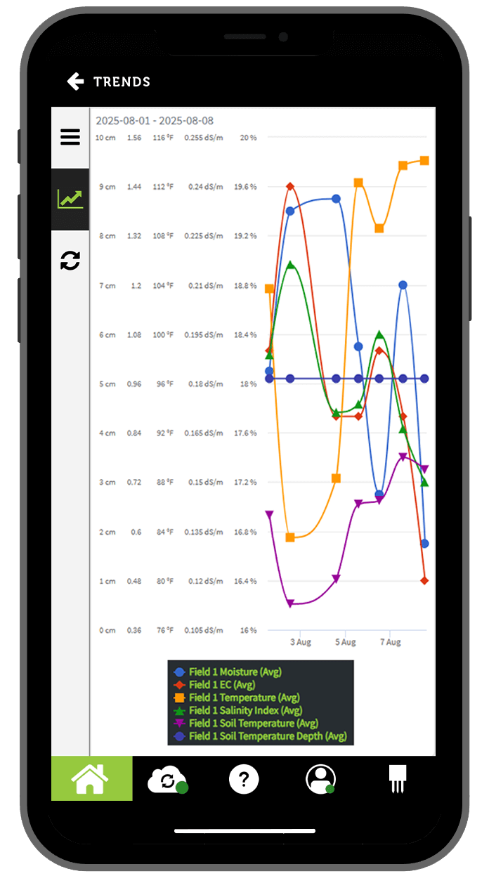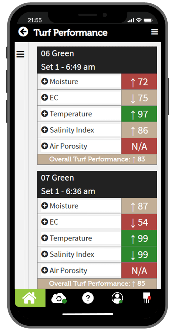 - The app displays real-time analytics and assessments of turf/soil moisture, salinity and temperature. This allows for timely reaction to conditions that could lead to costly problems.